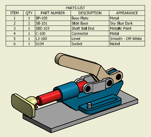 The model Appearance value is added as a selectable property. You can add the Appearance property to a bill of materials, or a parts list.