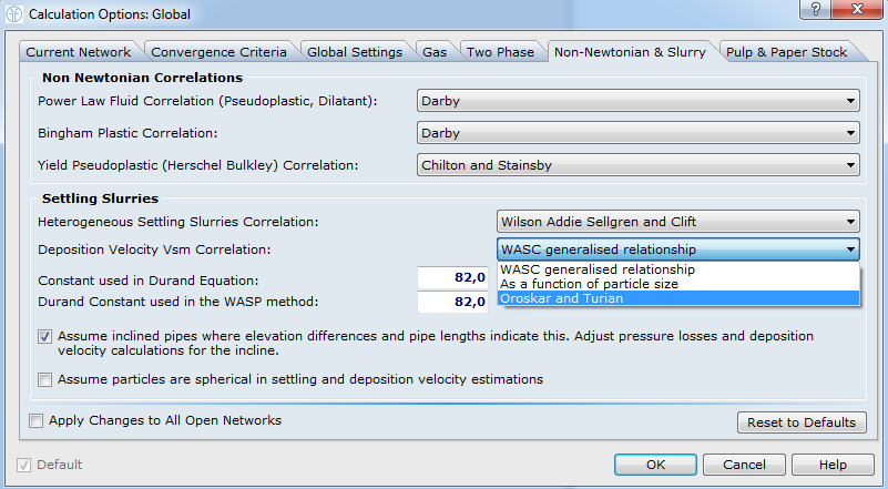 Pre výpočet prúdenia kalov a kašovitých zmesí v potrubných systémoch bola pre oblasť kritickej rýchlosti prúdenia pridaná nová korelácia Oroskar and Turian.