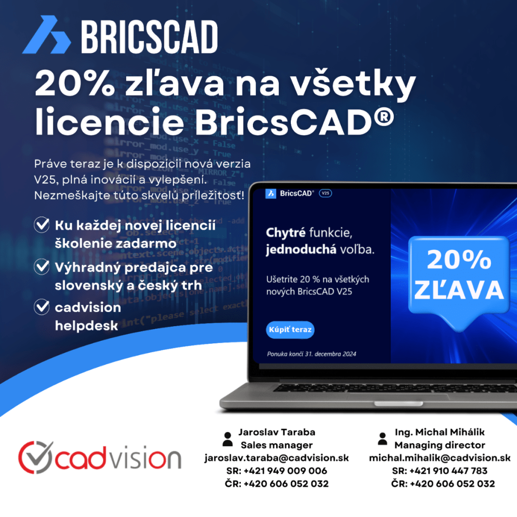 Spoločnosť cadvision je partner Bricsys a Hexagon pre Česku a Slovnesku republiku.